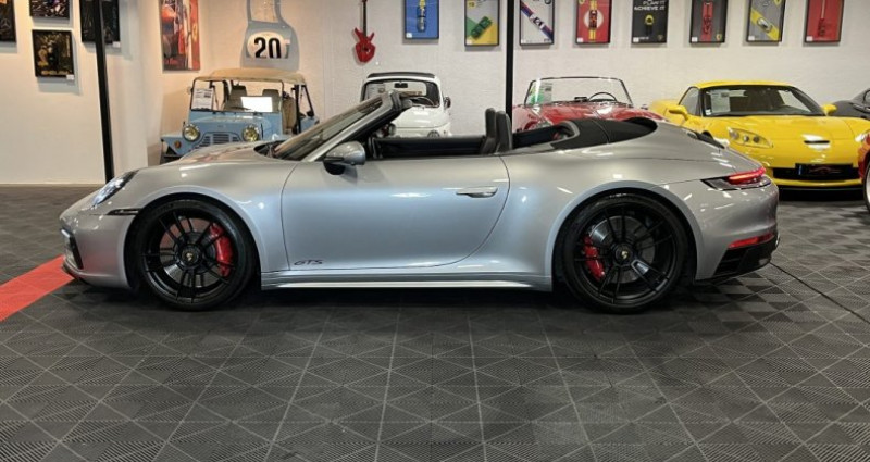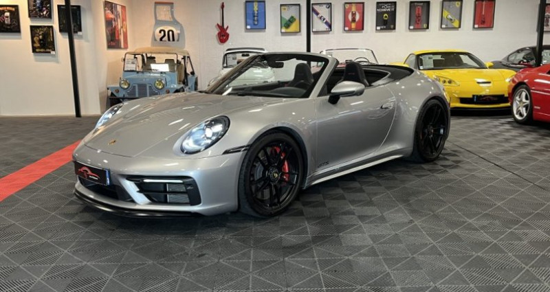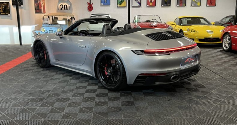 porsche 992 cabriolet carrera 4 gts 05/2022 480 ch - boîte pdk 19 400 km véhicule français Éligible porsche approved argent gt métallisée Équipements : pack sport chrono plus assistant changement de voie pdls+ avec matrix beam sièges avant chauffants cuir alcantara keyless entry sono bose